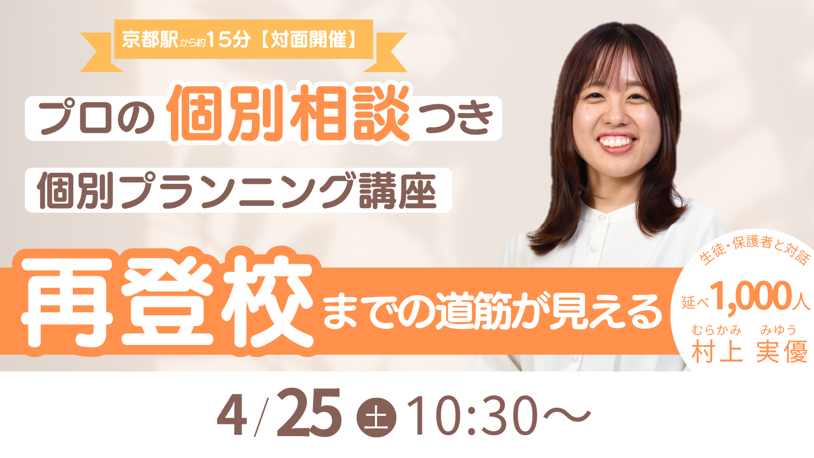 ✓対面イベント ✓1対1の個別相談付き ✓再登校プラン作成